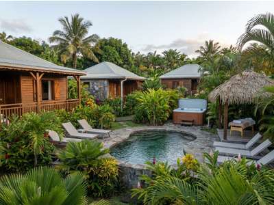 30 couchages opérationnels en mini villas joliment décorés et très bien équipées, piscines et jacuzzi, une maison pour les gérants, ou à ajouter à l'exploitation, possibilité de faire table d'hôtes, évènementiel et séminaires , le tout dans un jardin tropical luxuriant de près de 4000 M² avec de jolies vues mer.